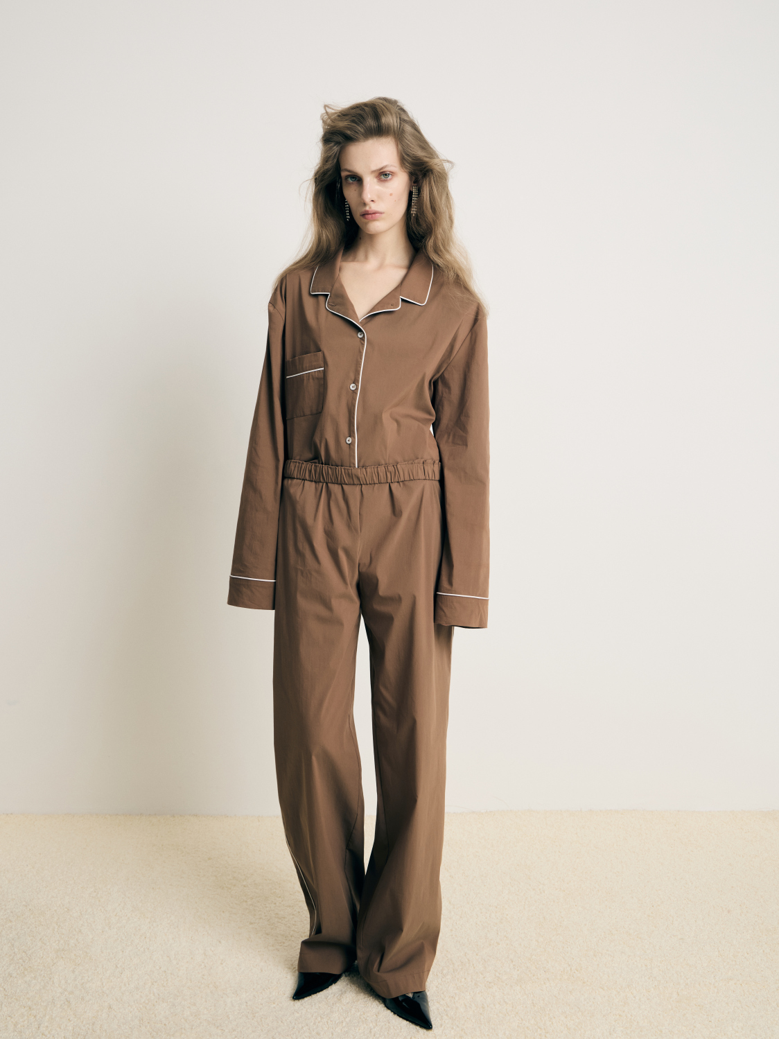 Женские брюки Mischa в коричневом цвете с кантом светлого цвета изготовлены из натурального хлопка премиального качества. Свободный крой и эластичный пояс обеспечивают комфортную посадку и свободу движений на протяжении всего дня. Дышащий материал делает модель универсальной - подходит как для дома, так и как комфортная одежда на каждый день. Идеально сочетаются с рубашкой Mischa.