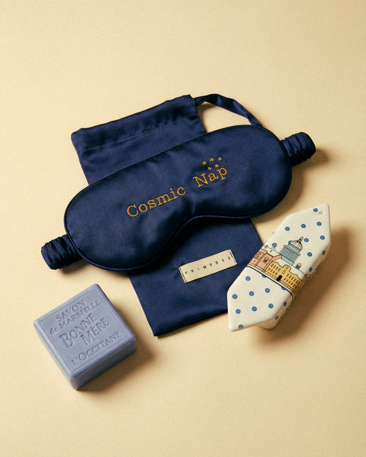 Маска для сна инего цвета с вышивкой Cosmic Nap- ваш ключ к здоровому и красивому сну.