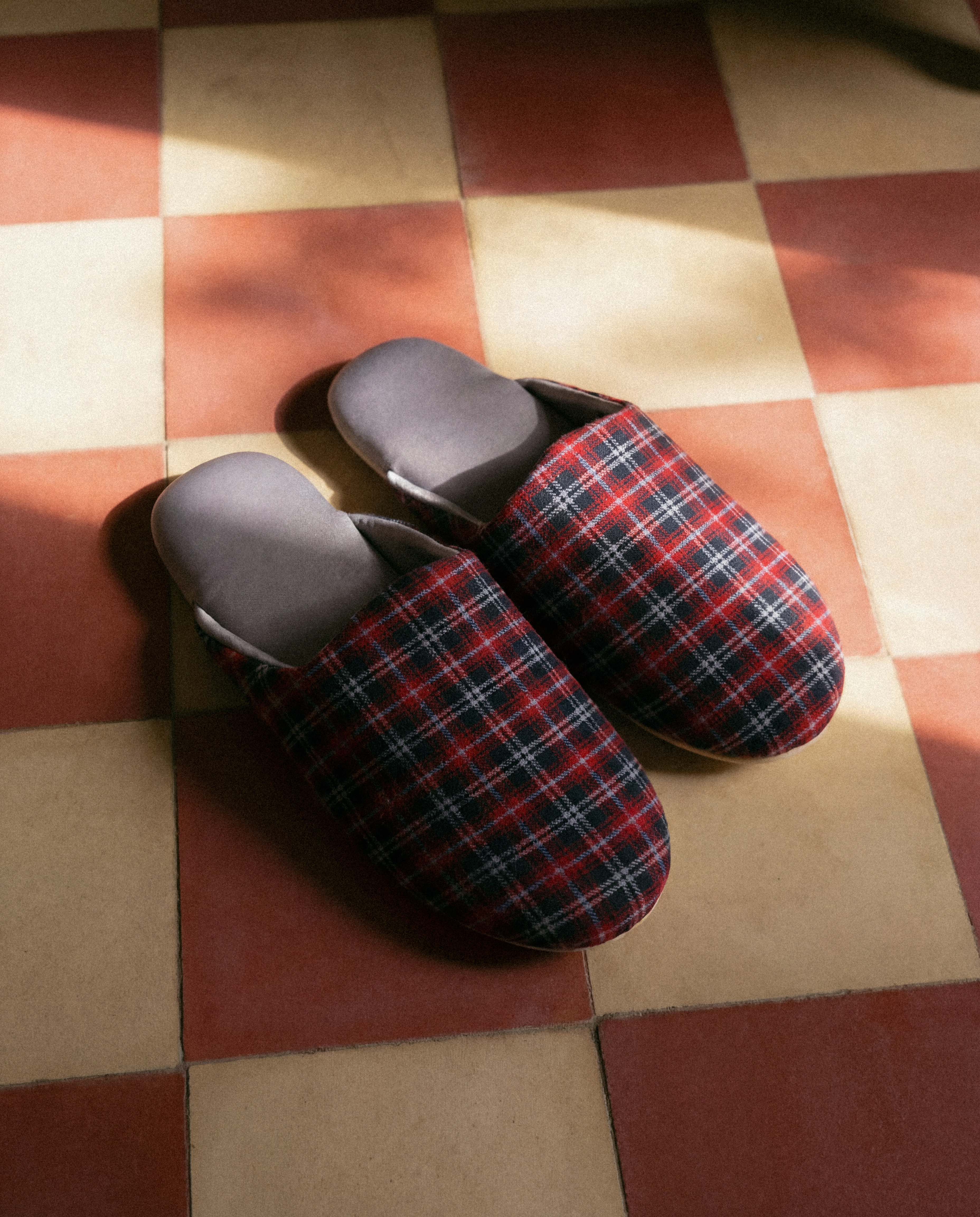 Тапочки из теплого материала в красную клетку дарят уют и комфорт дома и служат идеальным дополнением к пижаме. В нашей коллекции пижам для всей семьи вы найдете пижамы, маски, а также ароматическое саше из аналогичной ткани.