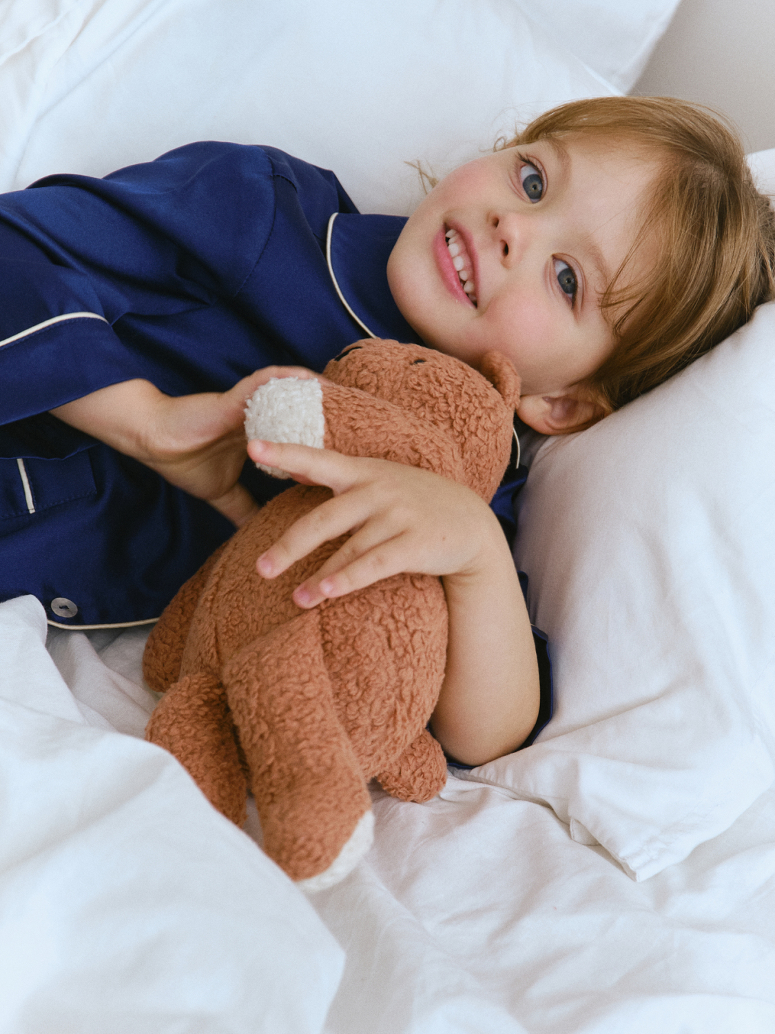 Детская пижама Sasha темно-синего цвета создана из натурального шелка премиального качества с заботой о чувствительной детской коже. Рубашка с длинными рукавами, кантом молочного цвета и центральной застежкой на пуговицы обеспечивает комфорт во время сна. На манжетах и воротнике возможно создание персональной вышивки с инициалами ребенка. Комплект подходит как для мальчиков, так и для девочек. Превосходно сочетается с женской пижамой Eva и мужской пижамой Sten.