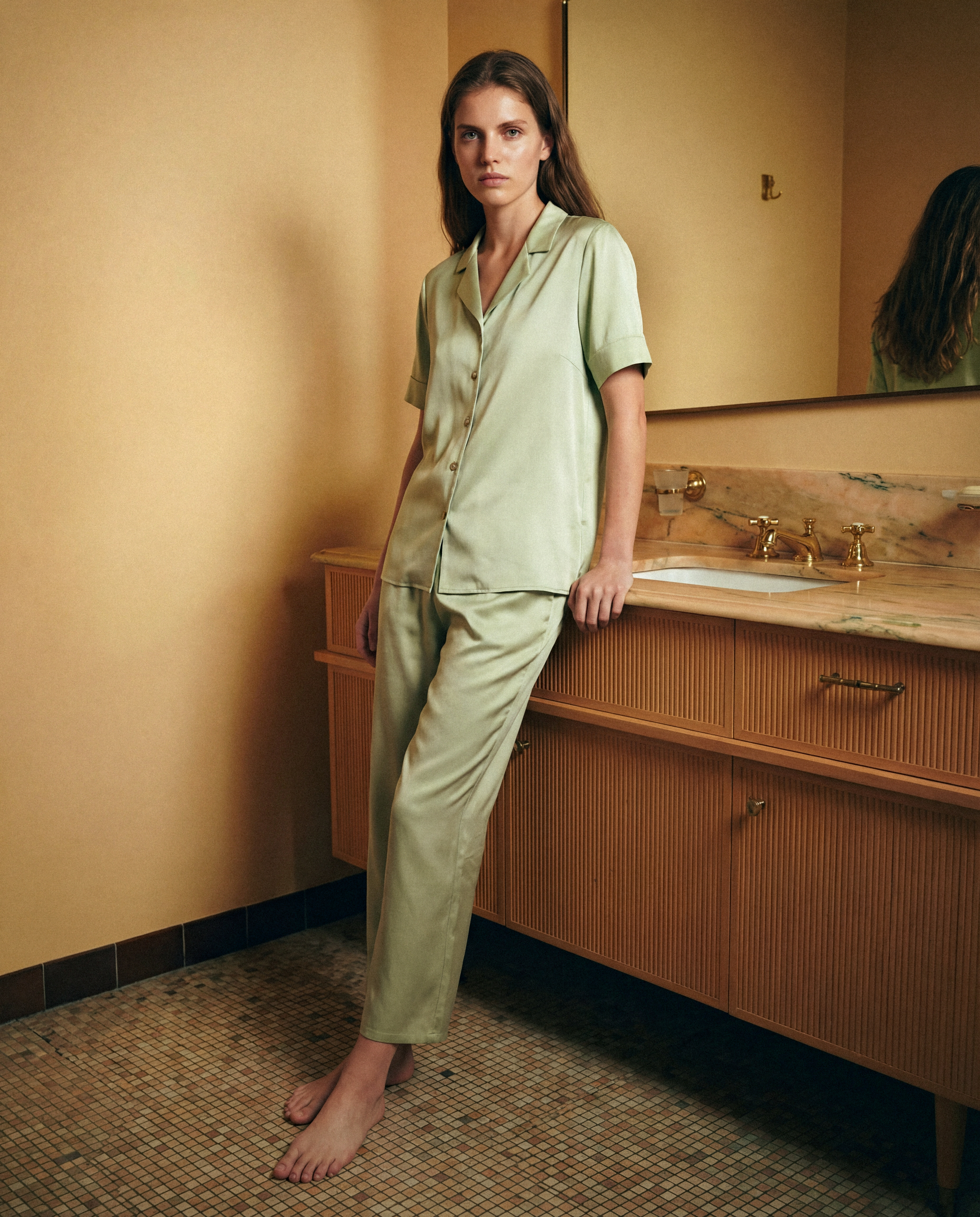 Женские укороченные брюки Ivy в мягком фисташковом цвете созданы из натурального шелка высочайшего качества. Свободный крой длиной 7/8 и комфортный эластичный пояс гарантируют идеальную посадку и неограниченную свободу движений. Минималистичный дизайн и благородная текстура материала делают модель универсальной - подходит как для дома, так и как роскошная одежда на выход. Идеально комбинируются с топом и рубашкой на завязках Ivy.