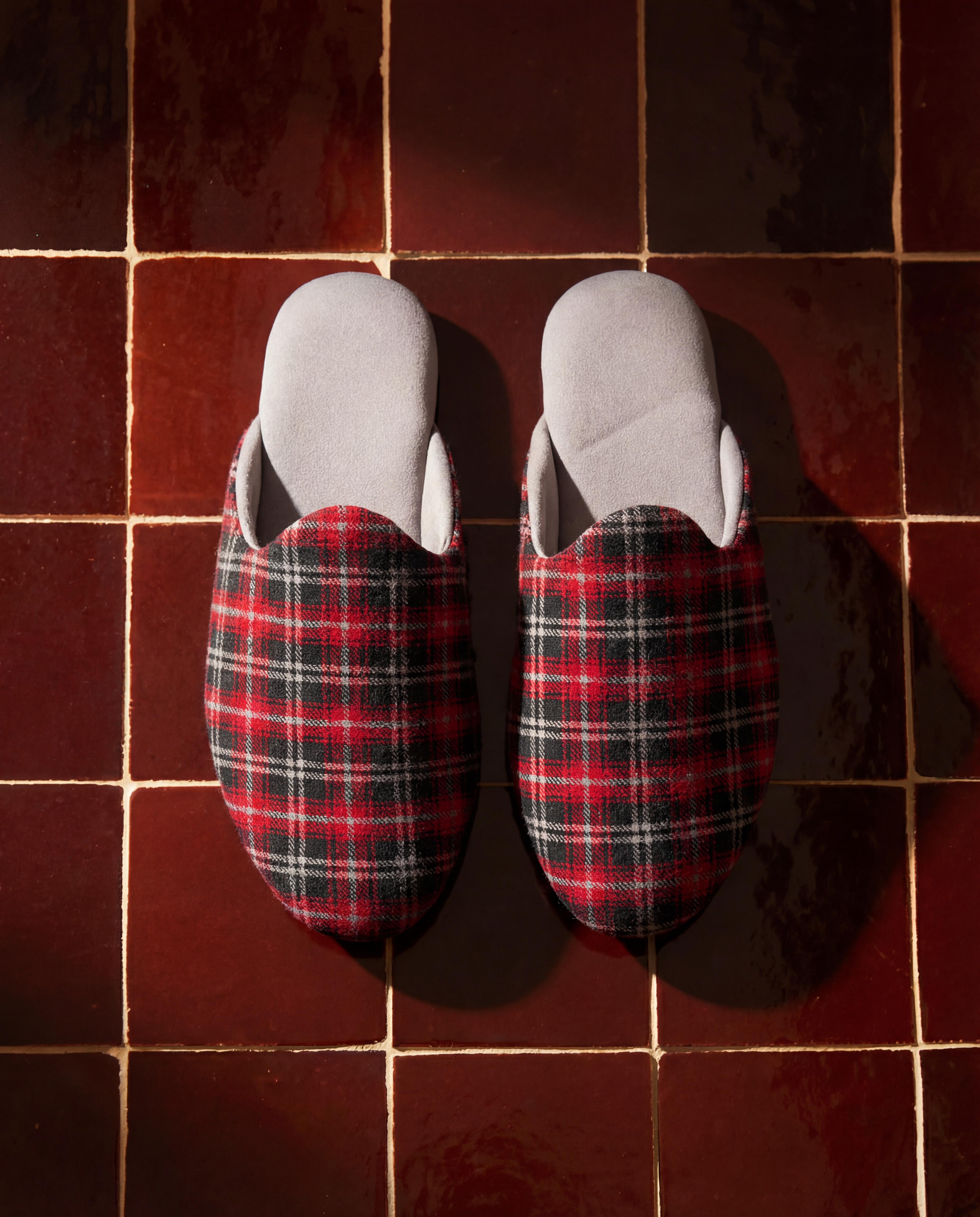 Тапочки из теплого материала в красную клетку дарят уют и комфорт дома и служат идеальным дополнением к пижаме. В нашей коллекции пижам для всей семьи вы найдете пижамы, маски, а также ароматическое саше из аналогичной ткани.